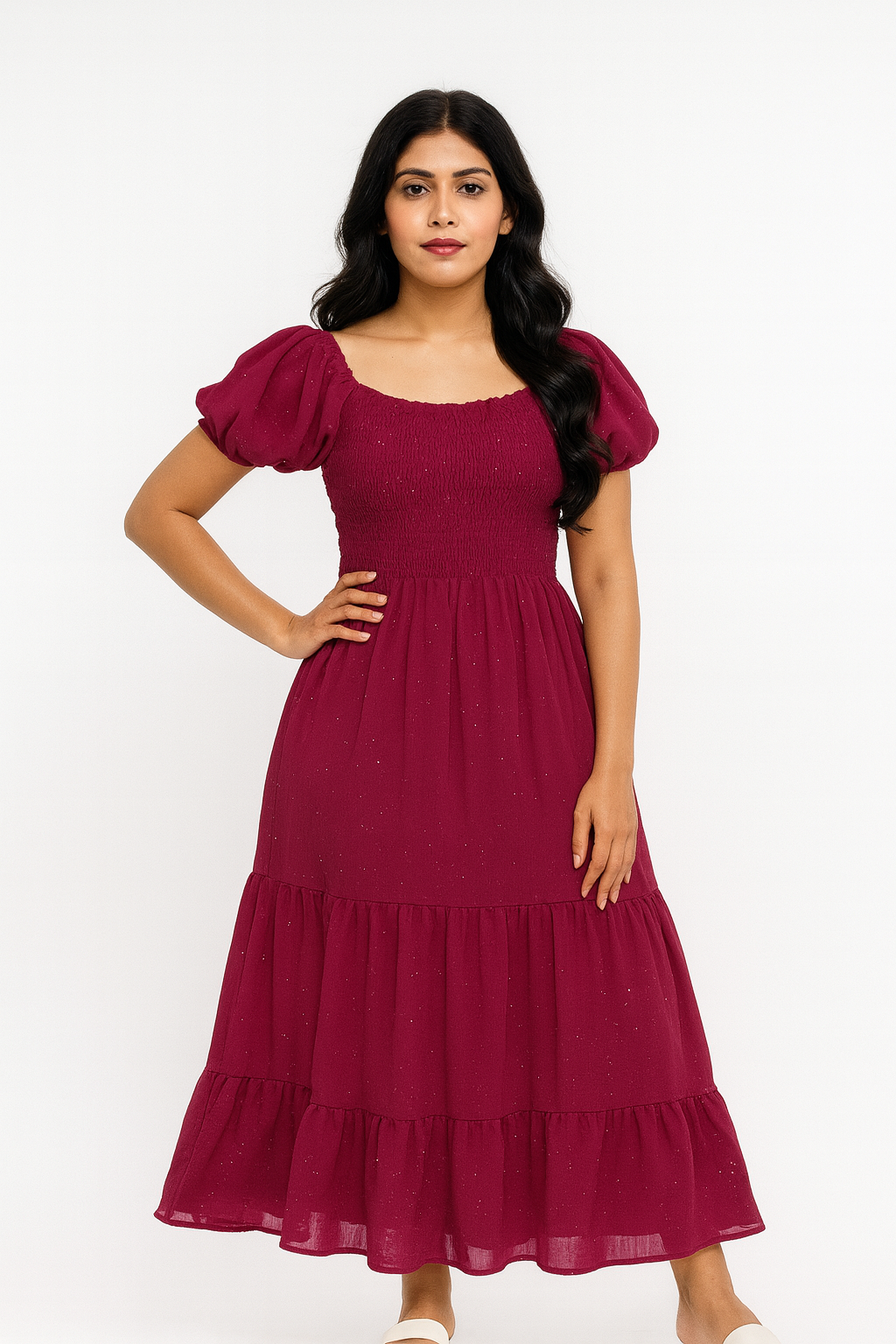 Be the first to review “Maroon Gown With Glitter Work Party Wear”