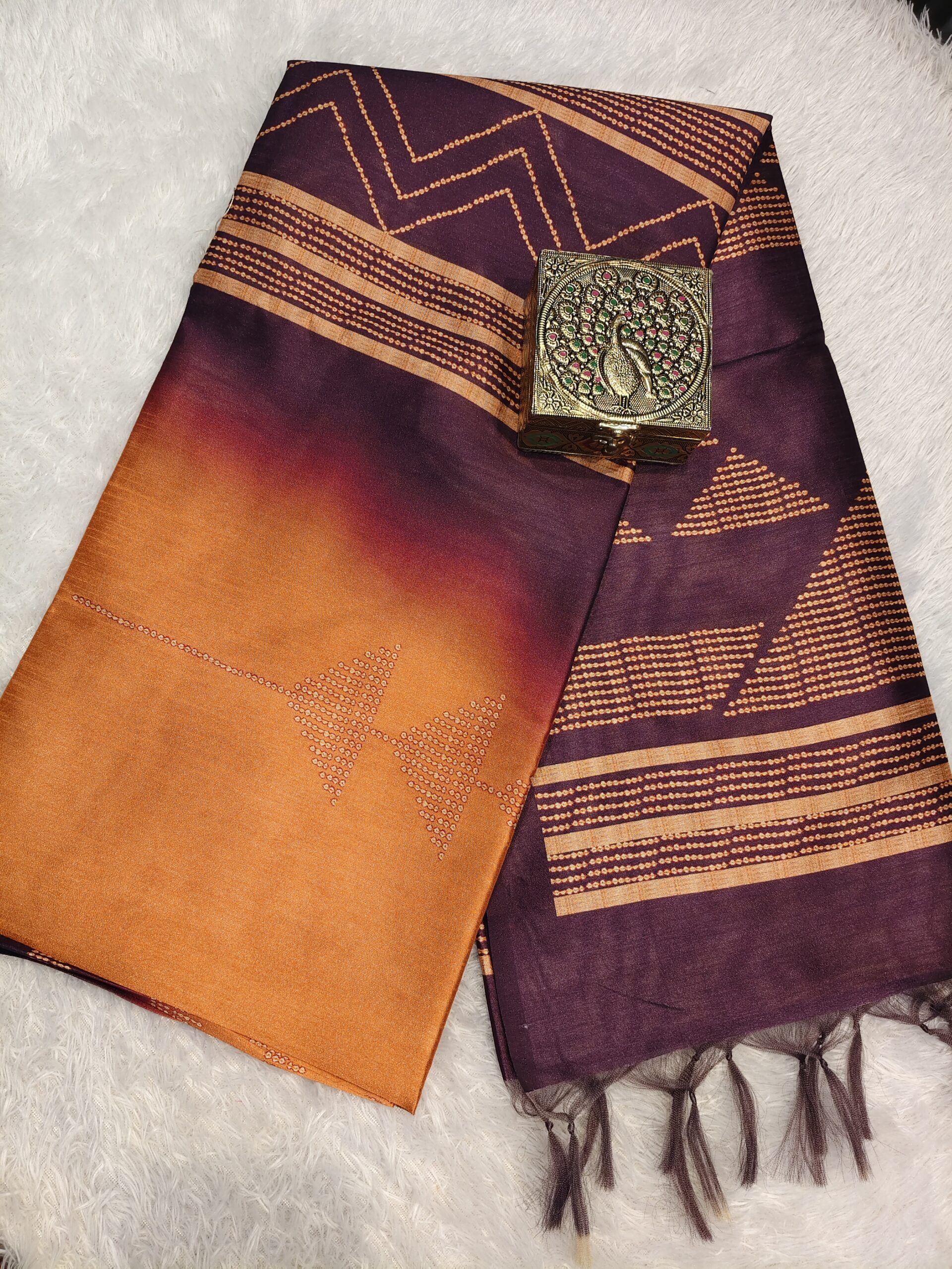 Elevate your ethnic wardrobe with this Soft Tussar Silk Saree, designed to combine traditional artistry with modern elegance. Made from premium-quality Tussar silk, this saree features a rich printed design with tassels, giving it a graceful and luxurious appeal.