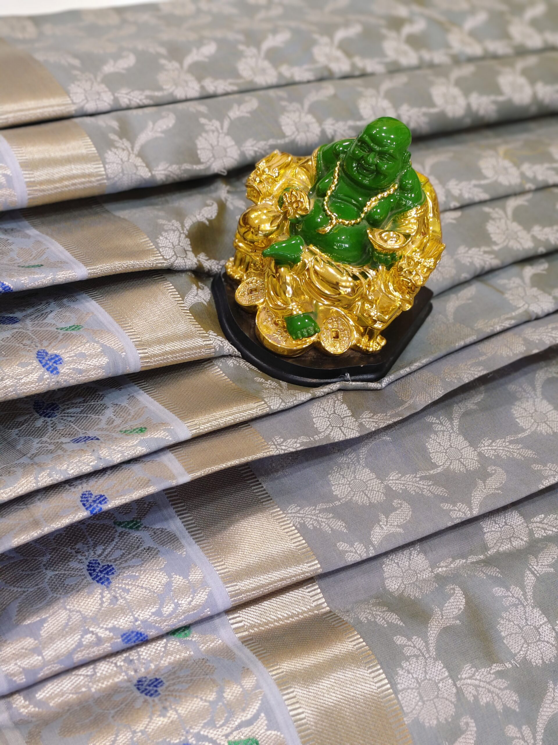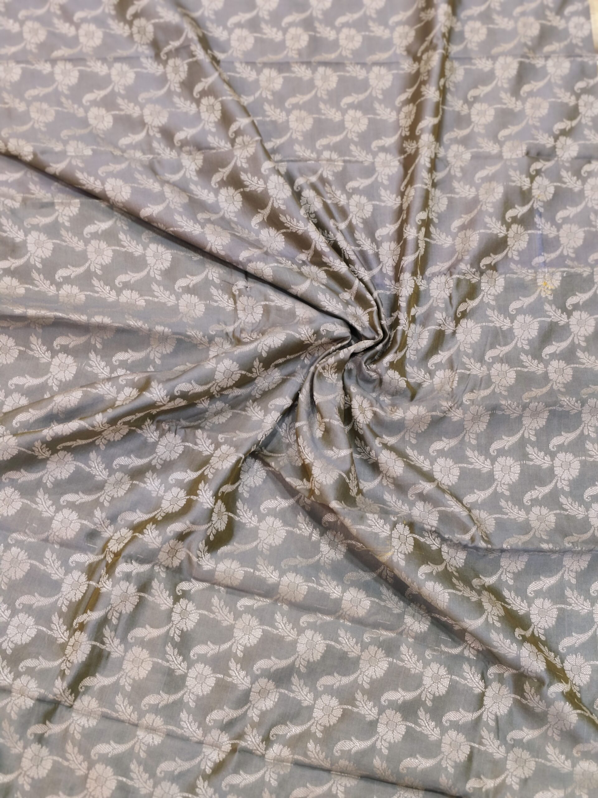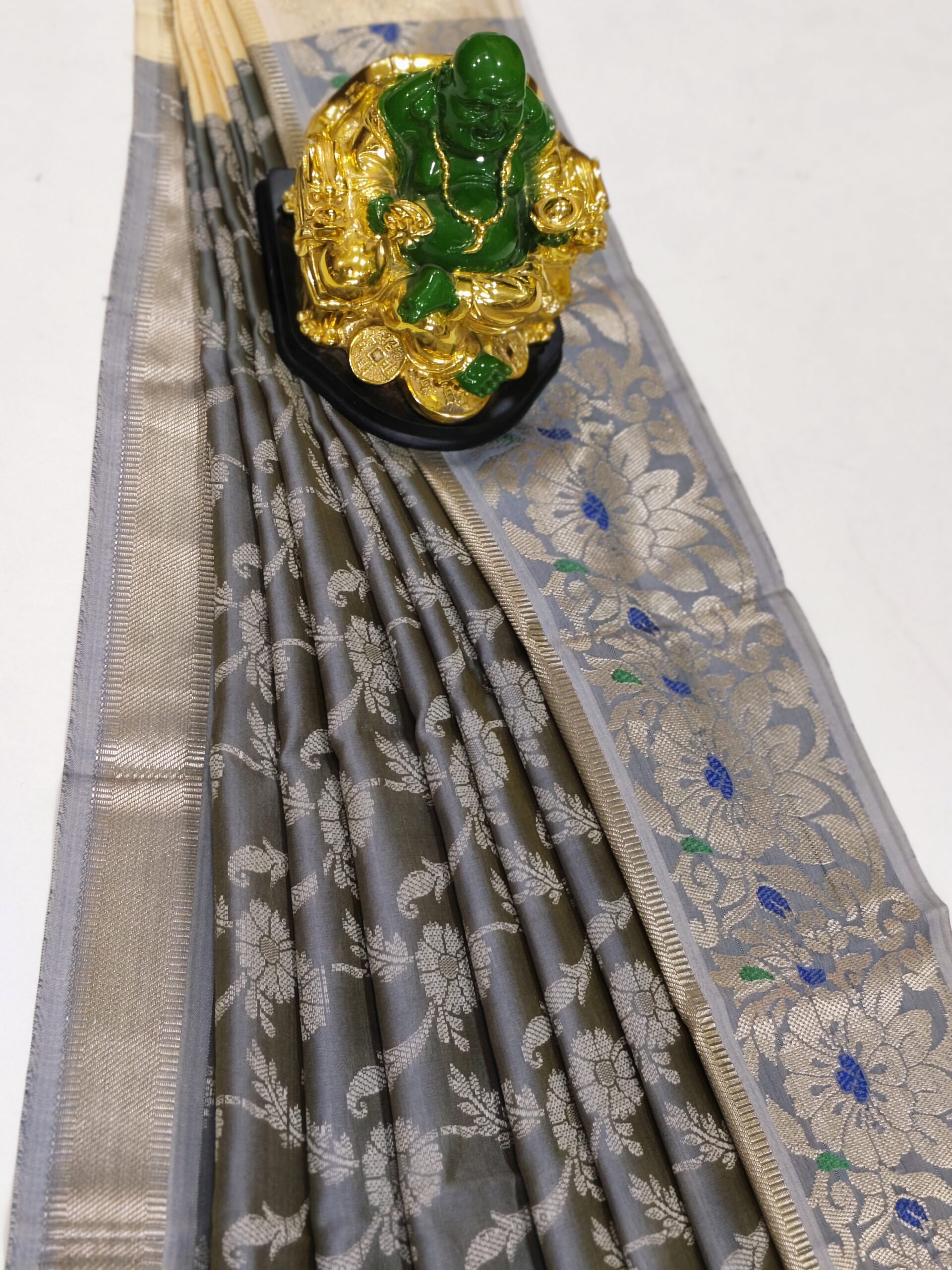 Ash Soft cotton rich golden zari woven floral design saree with golden zari border