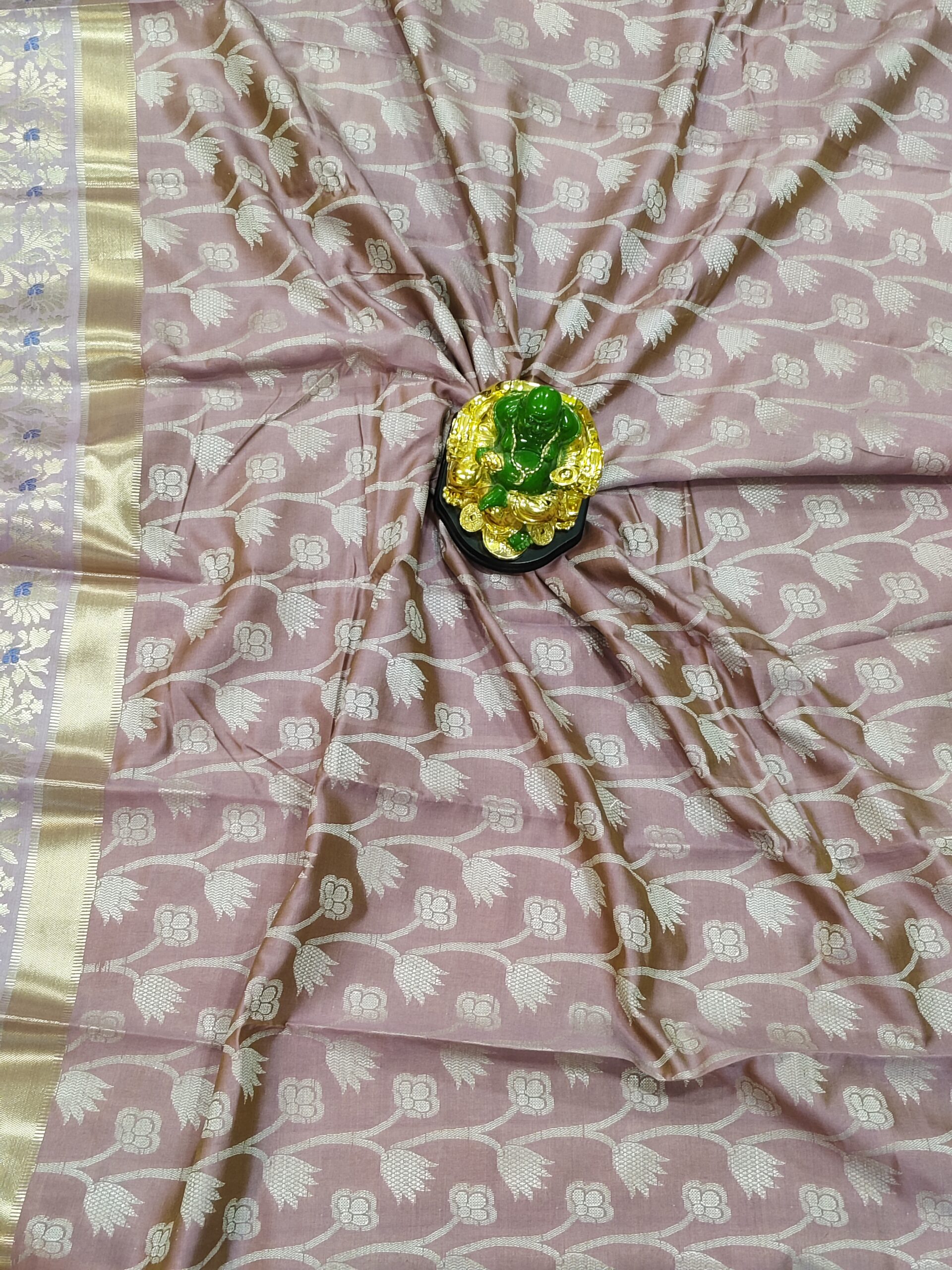 Onion pink Soft cotton rich golden zari woven floral design saree with golden zari border