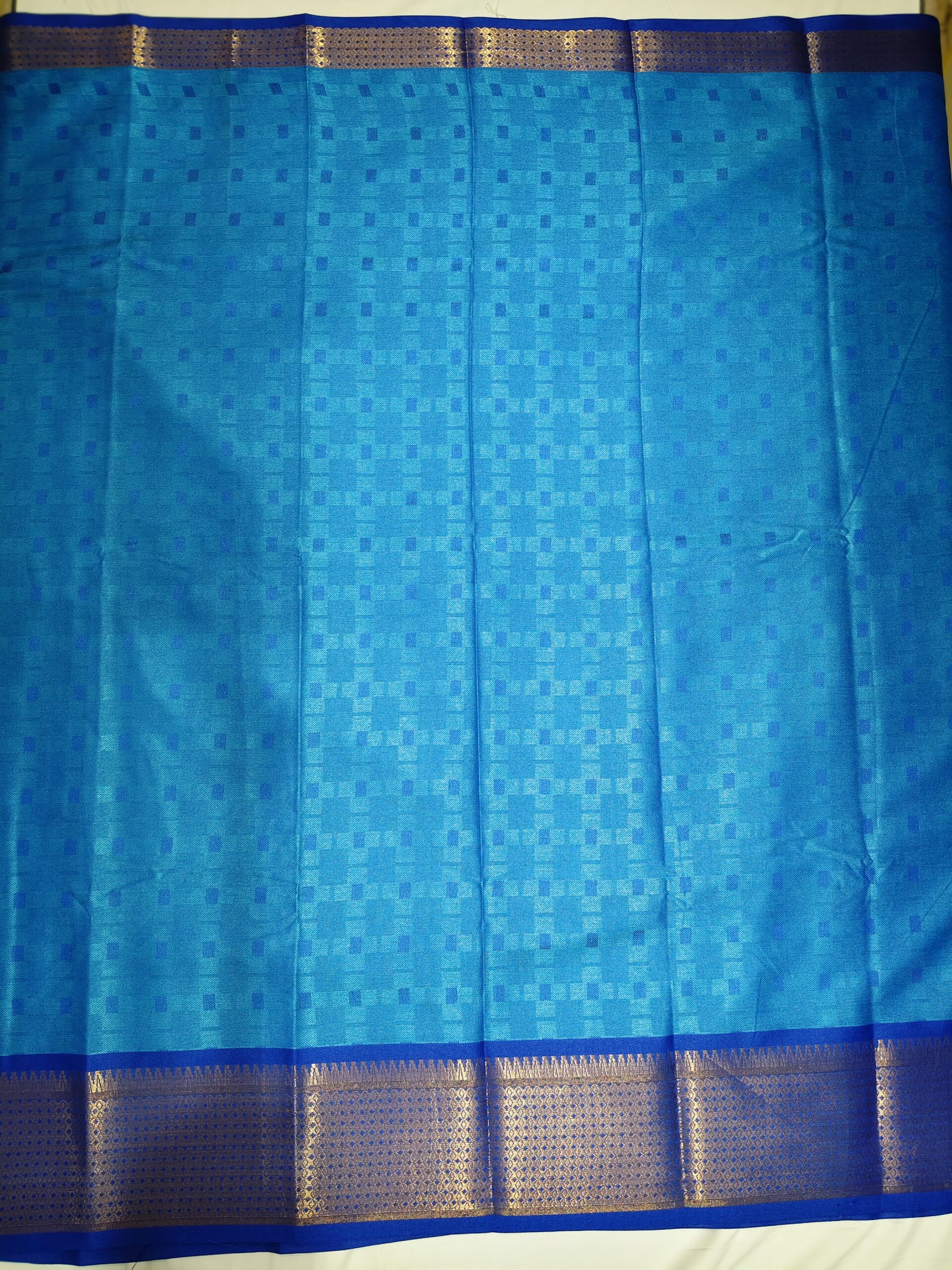Blue Soft cotton rich thread woven checked design saree & Golden zari border
