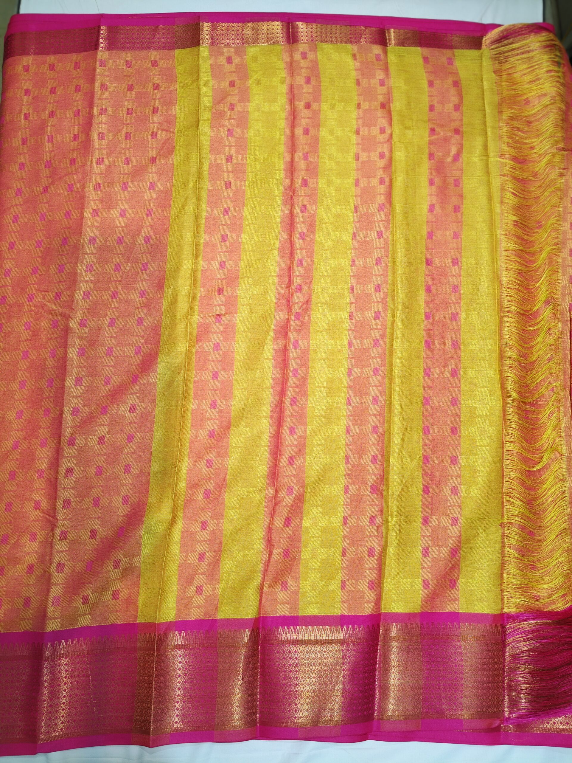 Women’s Checked Soft cotton Saree with Running Blouse Piece. Rich threaded woven checked design saree & Golden zari border with traditional design, Soft cotton saree for Office wear, Parties & Festivals.