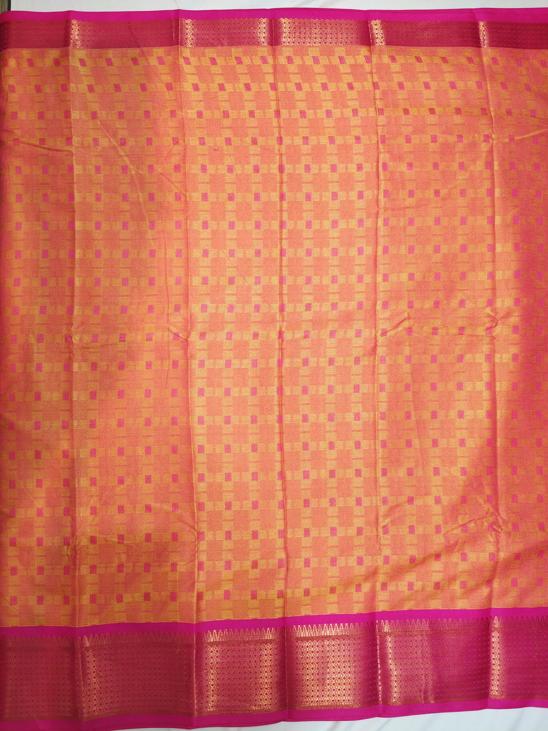 peach Soft cotton rich thread woven checked design saree & Golden zari border