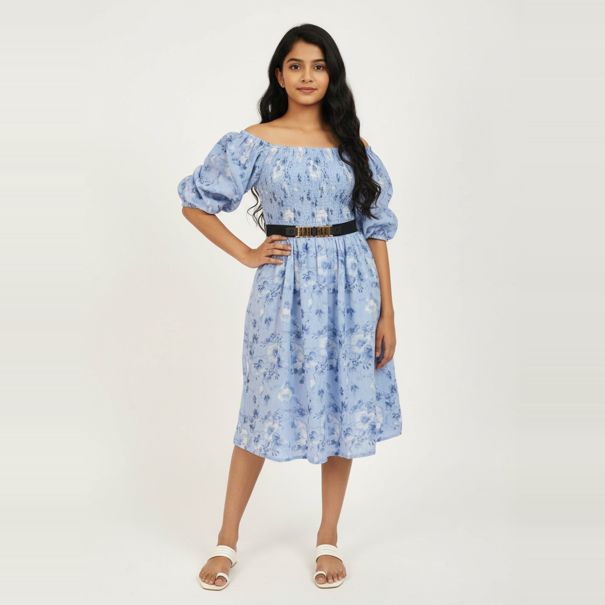 Be the first to review “Floral Puff Sleeve Smocked Dress with Belt”